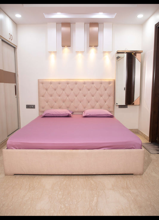 Pastel Pink Motif Print 100% Cotton King Bedsheet With Pillow Covers