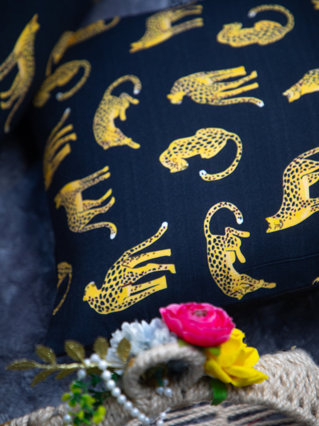 Add a touch of bold sophistication to your living space with our Set of 2 Black and Animal Print Cotton Square Cushion Covers. Crafted from high-quality cotton, these cushion covers offer a soft, breathable texture, ensuring both comfort and durability.