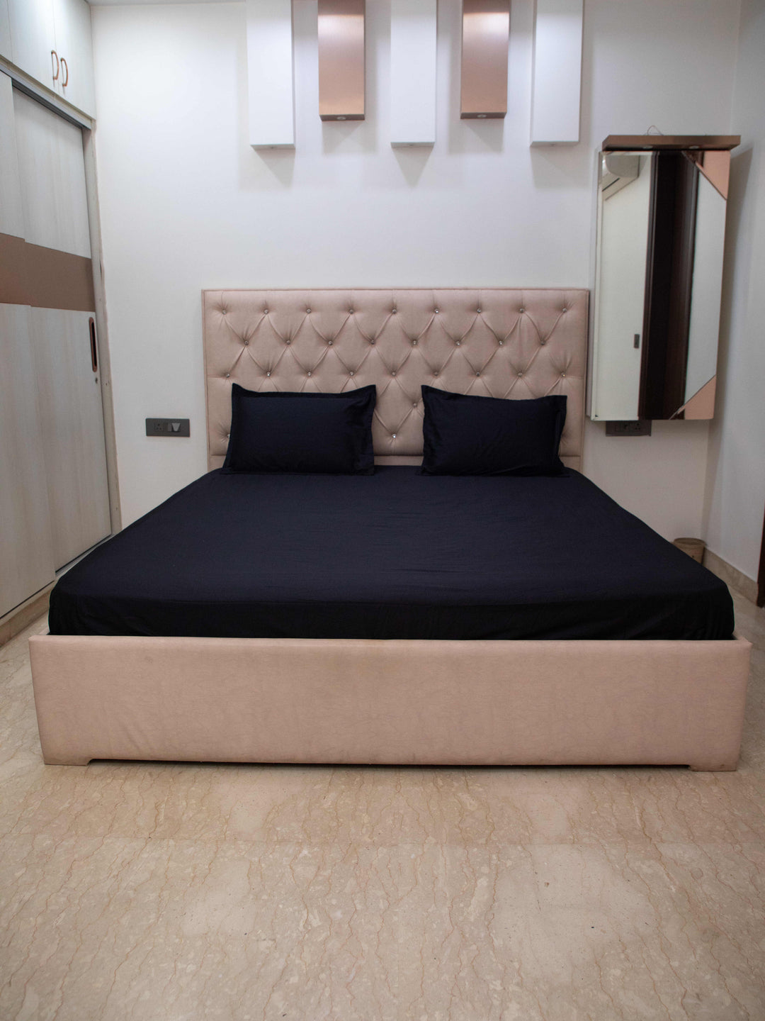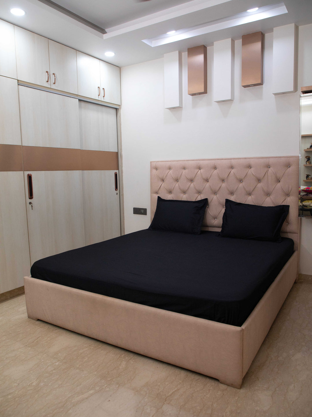 Introducing the Black Cotton Solid King Bedsheet with Pillow Covers. This striking bedsheet features a deep, solid black design that adds a touch of bold elegance and sophistication to your bedroom decor. Crafted from 100% premium cotton, it ensures a soft, breathable, and luxurious sleeping experience.