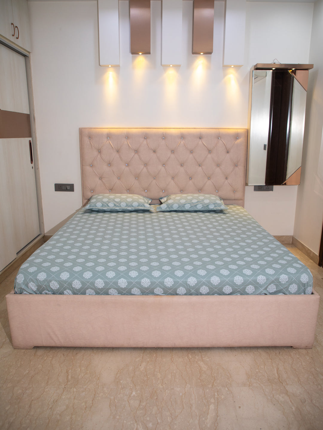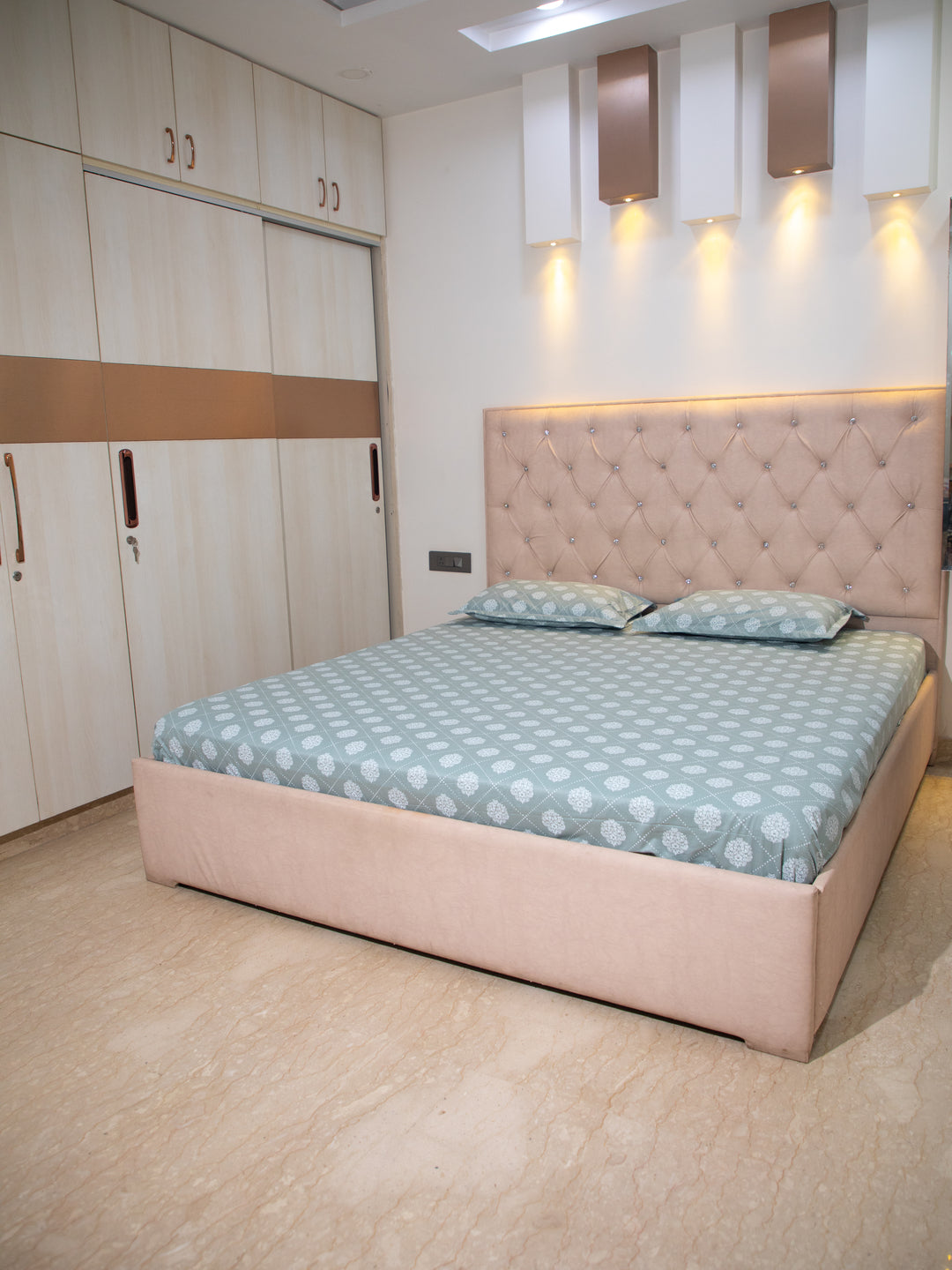 Pastel Green Motif Print 100% Cotton King Bedsheet With Pillow Covers