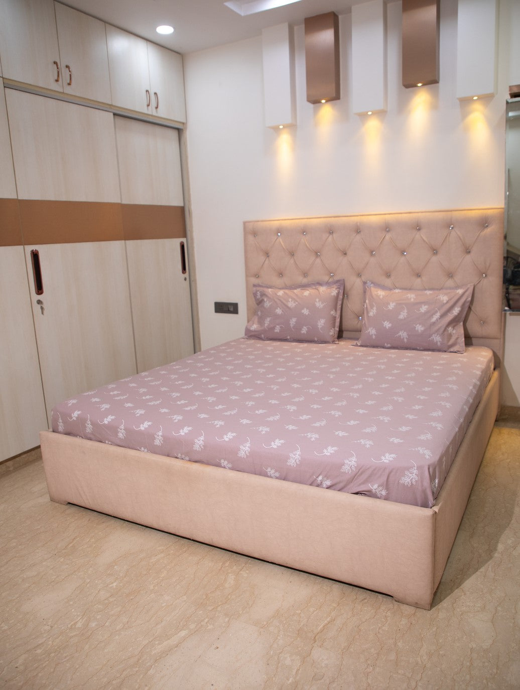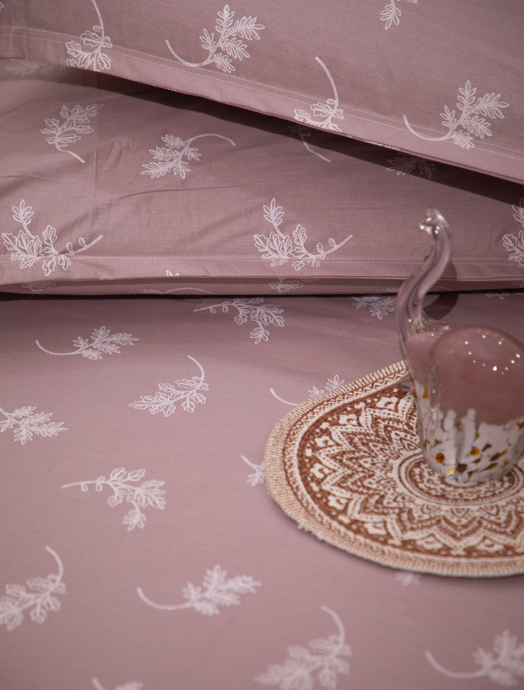 Rose Pink Leaf Print 100% Cotton King Bedsheet With Pillow Covers
