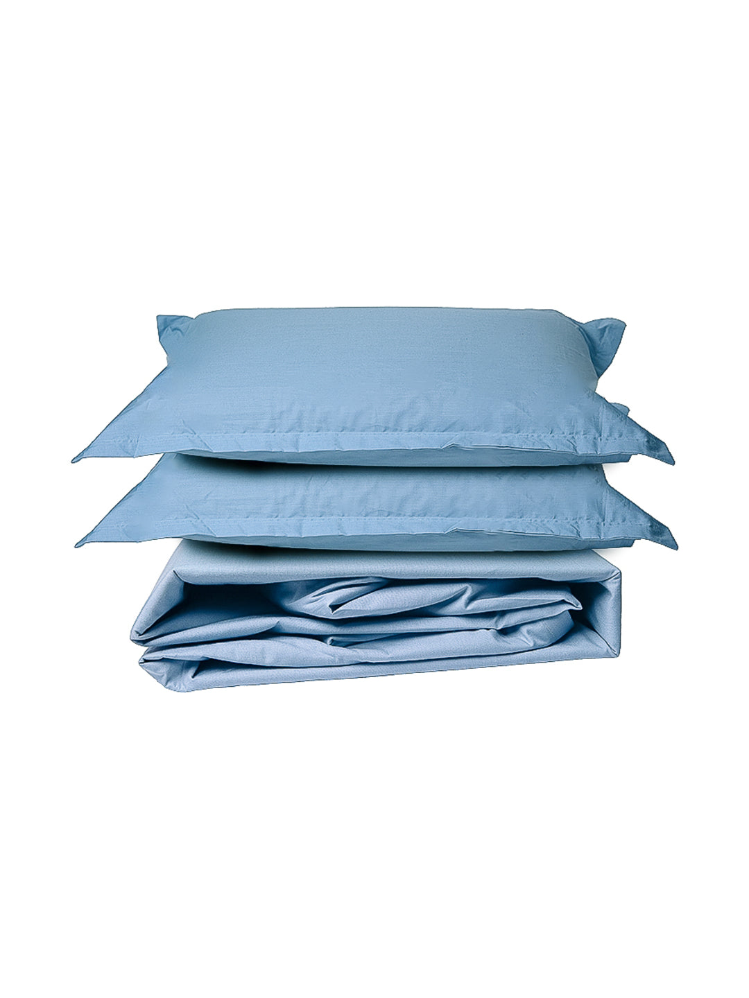 Sky Blue Solid 100% Cotton Solid Bedsheet With Pillow Covers
